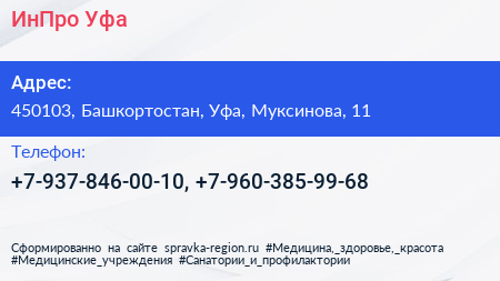 ИнПро Уфа по адресу 450103, Башкортостан, Уфа, Муксинова, 11 в дальнейшем Организация, размещена в следующих категориях: