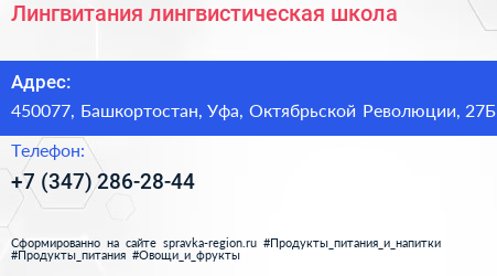 Лингвитания, лингвистическая школа по адресу 450077, Башкортостан, Уфа, Октябрьской Революции, 27Б в дальнейшем Организация, размещена в следующих категориях:
