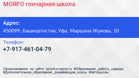 MORFO, гончарная школа по адресу 450099, Башкортостан, Уфа, Маршала Жукова, 10 в дальнейшем Организация, размещена в следующих категориях: