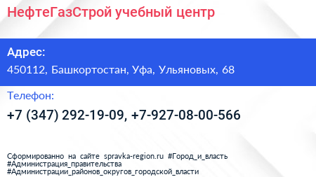 НефтеГазСтрой, учебный центр по адресу 450112, Башкортостан, Уфа, Ульяновых, 68 в дальнейшем Организация, размещена в следующих категориях: