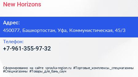 New Horizons по адресу 450077, Башкортостан, Уфа, Коммунистическая, 45/3 в дальнейшем Организация, размещена в следующих категориях: