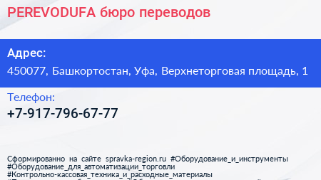 PEREVODUFA, бюро переводов по адресу 450077, Башкортостан, Уфа, Верхнеторговая площадь, 1 в дальнейшем Организация, размещена в следующих категориях: