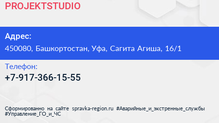 PROJEKTSTUDIO по адресу 450080, Башкортостан, Уфа, Сагита Агиша, 16/1 в дальнейшем Организация, размещена в следующих категориях: