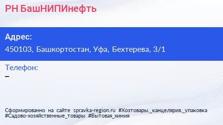 РН-БашНИПИнефть по адресу 450103, Башкортостан, Уфа, Бехтерева, 3/1 в дальнейшем Организация, размещена в следующих категориях:
