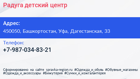 Радуга, детский центр по адресу 450050, Башкортостан, Уфа, Дагестанская, 33 в дальнейшем Организация, размещена в следующих категориях: