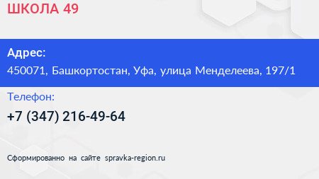 ШКОЛА №49 по адресу 450071, Башкортостан, Уфа, улица Менделеева, 197/1 в дальнейшем Организация, размещена в следующих категориях: