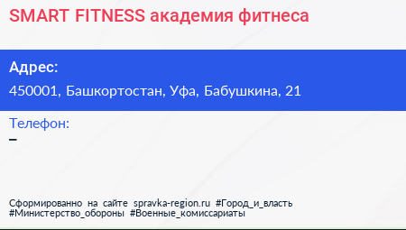 SMART FITNESS, академия фитнеса по адресу 450001, Башкортостан, Уфа, Бабушкина, 21 в дальнейшем Организация, размещена в следующих категориях: