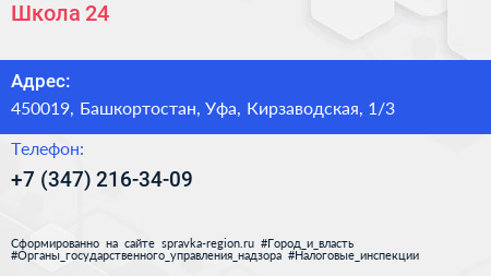 Школа №24 по адресу 450019, Башкортостан, Уфа, Кирзаводская, 1/3 в дальнейшем Организация, размещена в следующих категориях: