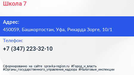 Школа №7 по адресу 450059, Башкортостан, Уфа, Рихарда Зорге, 10/1 в дальнейшем Организация, размещена в следующих категориях: