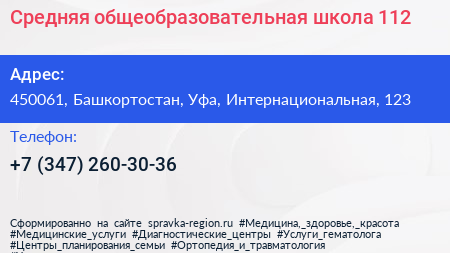 Средняя общеобразовательная школа №112 по адресу 450061, Башкортостан, Уфа, Интернациональная, 123 в дальнейшем Организация, размещена в следующих категориях: