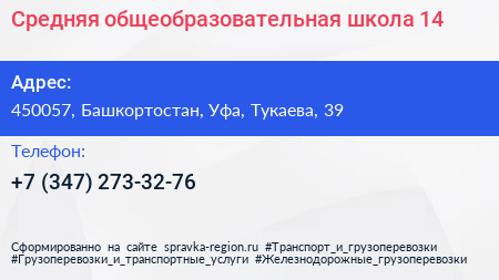 Средняя общеобразовательная школа №14 по адресу 450057, Башкортостан, Уфа, Тукаева, 39 в дальнейшем Организация, размещена в следующих категориях: