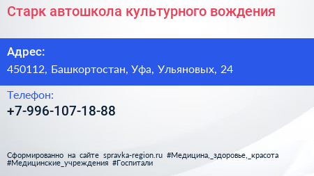 Старк, автошкола культурного вождения по адресу 450112, Башкортостан, Уфа, Ульяновых, 24 в дальнейшем Организация, размещена в следующих категориях: