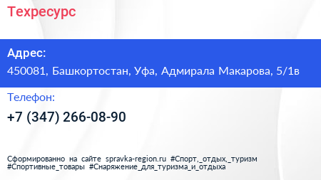 Техресурс по адресу 450081, Башкортостан, Уфа, Адмирала Макарова, 5/1в в дальнейшем Организация, размещена в следующих категориях: