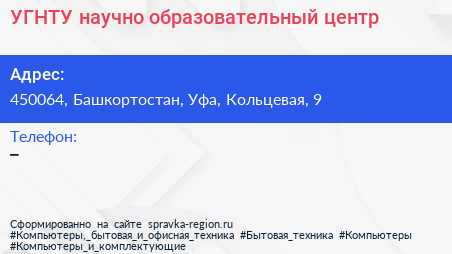УГНТУ, научно-образовательный центр по адресу 450064, Башкортостан, Уфа, Кольцевая, 9 в дальнейшем Организация, размещена в следующих категориях: