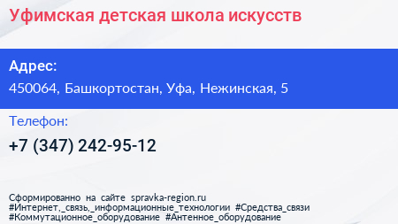 Уфимская детская школа искусств по адресу 450064, Башкортостан, Уфа, Нежинская, 5 в дальнейшем Организация, размещена в следующих категориях: