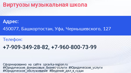 Виртуозы, музыкальная школа по адресу 450077, Башкортостан, Уфа, Чернышевского, 127 в дальнейшем Организация, размещена в следующих категориях: