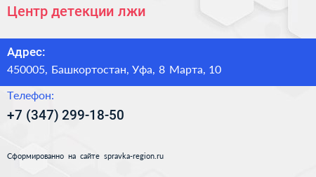 Центр детекции лжи по адресу 450005, Башкортостан, Уфа, 8 Марта, 10 в дальнейшем Организация, размещена в следующих категориях: