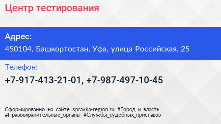 Центр тестирования по адресу 450104, Башкортостан, Уфа, улица Российская, 25 в дальнейшем Организация, размещена в следующих категориях: