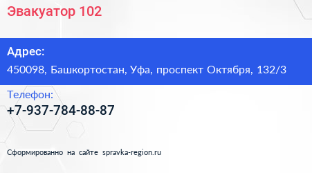 Эвакуатор 102 по адресу 450098, Башкортостан, Уфа, проспект Октября, 132/3 в дальнейшем Организация, размещена в следующих категориях:
