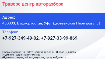Траверс, центр авторазбора по адресу 450003, Башкортостан, Уфа, Деревенская Переправа, 51 в дальнейшем Организация, размещена в следующих категориях: