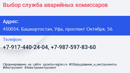Выбор, служба аварийных комиссаров по адресу 450054, Башкортостан, Уфа, проспект Октября, 56 в дальнейшем Организация, размещена в следующих категориях: