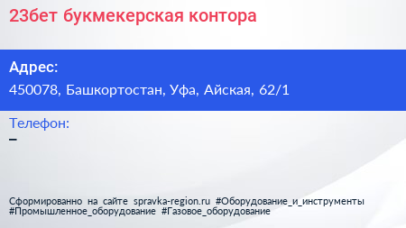 23бет, букмекерская контора по адресу 450078, Башкортостан, Уфа, Айская, 62/1 в дальнейшем Организация, размещена в следующих категориях:
