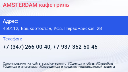 AMSTERDAM, кафе-гриль по адресу 450112, Башкортостан, Уфа, Первомайская, 28 в дальнейшем Организация, размещена в следующих категориях: