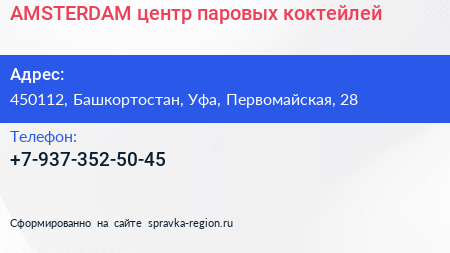 AMSTERDAM, центр паровых коктейлей по адресу 450112, Башкортостан, Уфа, Первомайская, 28 в дальнейшем Организация, размещена в следующих категориях: