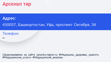 Арсенал, тир по адресу 450037, Башкортостан, Уфа, проспект Октября, 34 в дальнейшем Организация, размещена в следующих категориях:
