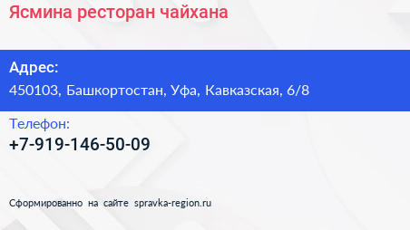 Ясмина, ресторан-чайхана по адресу 450103, Башкортостан, Уфа, Кавказская, 6/8 в дальнейшем Организация, размещена в следующих категориях: