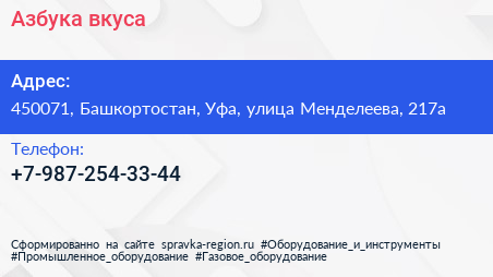 Азбука вкуса по адресу 450071, Башкортостан, Уфа, улица Менделеева, 217а в дальнейшем Организация, размещена в следующих категориях: