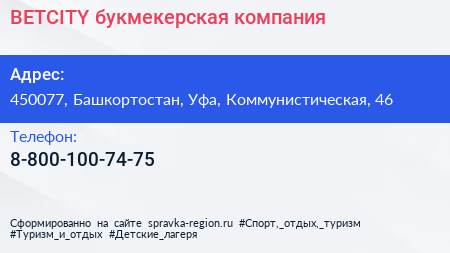 BETCITY, букмекерская компания по адресу 450077, Башкортостан, Уфа, Коммунистическая, 46 в дальнейшем Организация, размещена в следующих категориях: