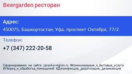 Beergarden, ресторан по адресу 450075, Башкортостан, Уфа, проспект Октября, 77/2 в дальнейшем Организация, размещена в следующих категориях: