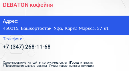 DEBATON, кофейня по адресу 450015, Башкортостан, Уфа, Карла Маркса, 37 к1 в дальнейшем Организация, размещена в следующих категориях: