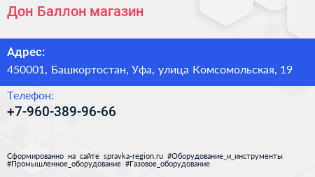 Дон Баллон, магазин по адресу 450001, Башкортостан, Уфа, улица Комсомольская, 19 в дальнейшем Организация, размещена в следующих категориях: