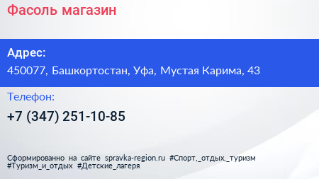 Фасоль, магазин по адресу 450077, Башкортостан, Уфа, Мустая Карима, 43 в дальнейшем Организация, размещена в следующих категориях: