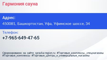 Гармония, сауна по адресу 450081, Башкортостан, Уфа, Уфимское шоссе, 34 в дальнейшем Организация, размещена в следующих категориях: