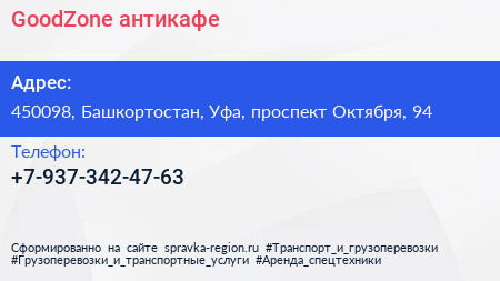GoodZone, антикафе по адресу 450098, Башкортостан, Уфа, проспект Октября, 94 в дальнейшем Организация, размещена в следующих категориях: