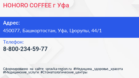 HOHORO COFFEE, г. Уфа по адресу 450077, Башкортостан, Уфа, Цюрупы, 44/1 в дальнейшем Организация, размещена в следующих категориях: