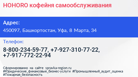 HOHORO, кофейня самообслуживания по адресу 450097, Башкортостан, Уфа, 8 Марта, 34 в дальнейшем Организация, размещена в следующих категориях: