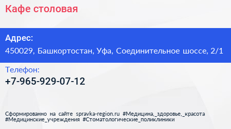 Кафе-столовая по адресу 450029, Башкортостан, Уфа, Соединительное шоссе, 2/1 в дальнейшем Организация, размещена в следующих категориях: