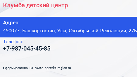 Клумба, детский центр по адресу 450077, Башкортостан, Уфа, Октябрьской Революции, 27Б в дальнейшем Организация, размещена в следующих категориях: