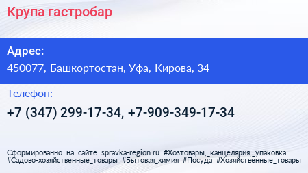Для связи с организацией воспользуйтесь номером телефона: +7 (347) 299-17-34, +7-909-349-17-34. Ежедневно с 18:00 до 04:00. до последнего гостя: пн-вс, вы можете обратиться в эту организацию.