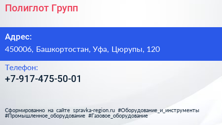 Полиглот-Групп по адресу 450006, Башкортостан, Уфа, Цюрупы, 120 в дальнейшем Организация, размещена в следующих категориях:
