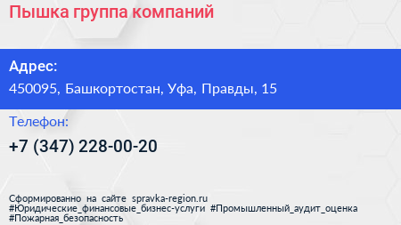 Для связи с организацией воспользуйтесь номером телефона: +7 (347) 228-00-20.