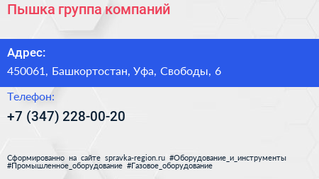 Для связи с организацией воспользуйтесь номером телефона: +7 (347) 228-00-20.