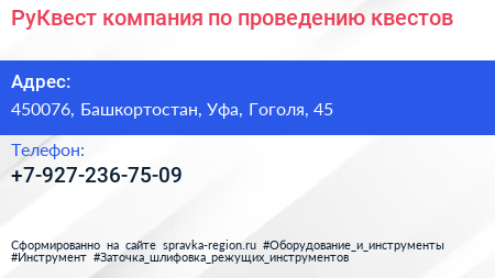 РуКвест, компания по проведению квестов по адресу 450076, Башкортостан, Уфа, Гоголя, 45 в дальнейшем Организация, размещена в следующих категориях: