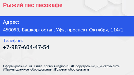 Рыжий пес, песокафе по адресу 450098, Башкортостан, Уфа, проспект Октября, 114/1 в дальнейшем Организация, размещена в следующих категориях: