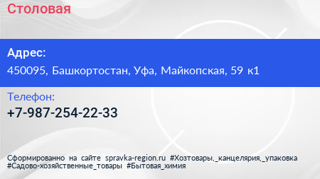 Столовая по адресу 450095, Башкортостан, Уфа, Майкопская, 59 к1 в дальнейшем Организация, размещена в следующих категориях: