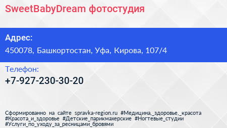 SweetBabyDream, фотостудия по адресу 450078, Башкортостан, Уфа, Кирова, 107/4 в дальнейшем Организация, размещена в следующих категориях: